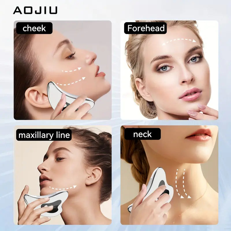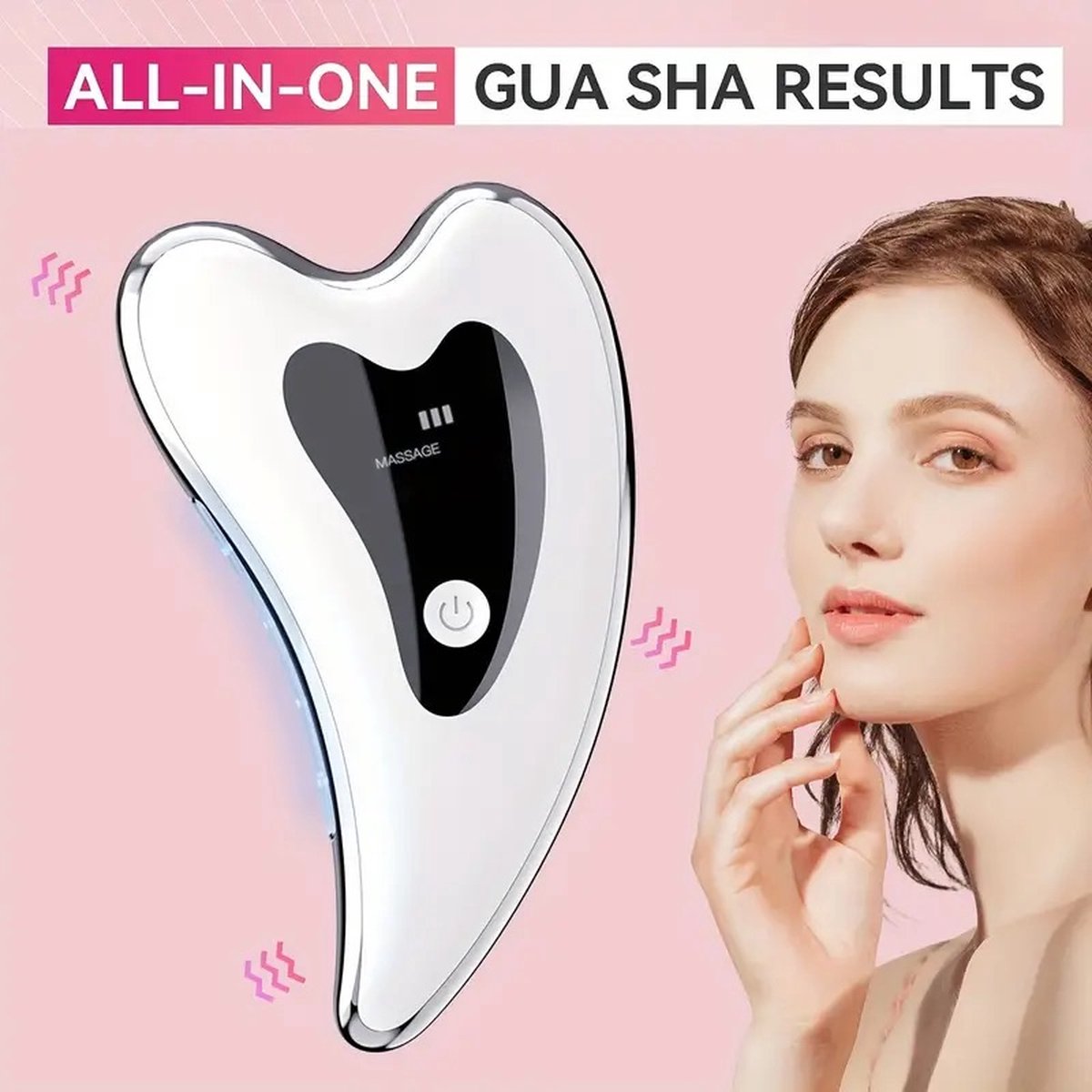 Modelleer, lift en laat uw huid stralen met de elektrische Gua Sha-gezichtsmasseerder.