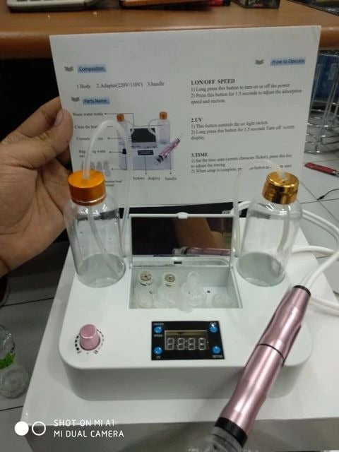 FacialClean DeLuxe is jouw complete 8-in-1 gezichtsreinigingssysteem voor thuis, ontworpen om je huid te zuiveren, te verfrissen en te verjongen. Met behulp van vacuümzuiging en hydrojet waterspraytechnologie reinigt het de poriën diep om mee-eters, overtollige olie en onzuiverheden te verwijderen, terwijl zuurstofrijke kleine bubbels voor een milde hydratatie zorgen. Het is niet zomaar een mee-eterverwijderaar - het is een apparaat voor volledige gezichtsverzorging, uitgerust met meerdere koppen, waaronder diamantkoppen, waterjetkoppen en vacuümkoppen, plus een uv-sterilisatiekamer om alles hygiënisch te houden. Lichtgewicht, draagbaar en gebruiksvriendelijk, met ingebouwde spiegel en instelbare instellingen, biedt het zowel milde microdermabrasie als krachtige reiniging voor alle huidtypen.