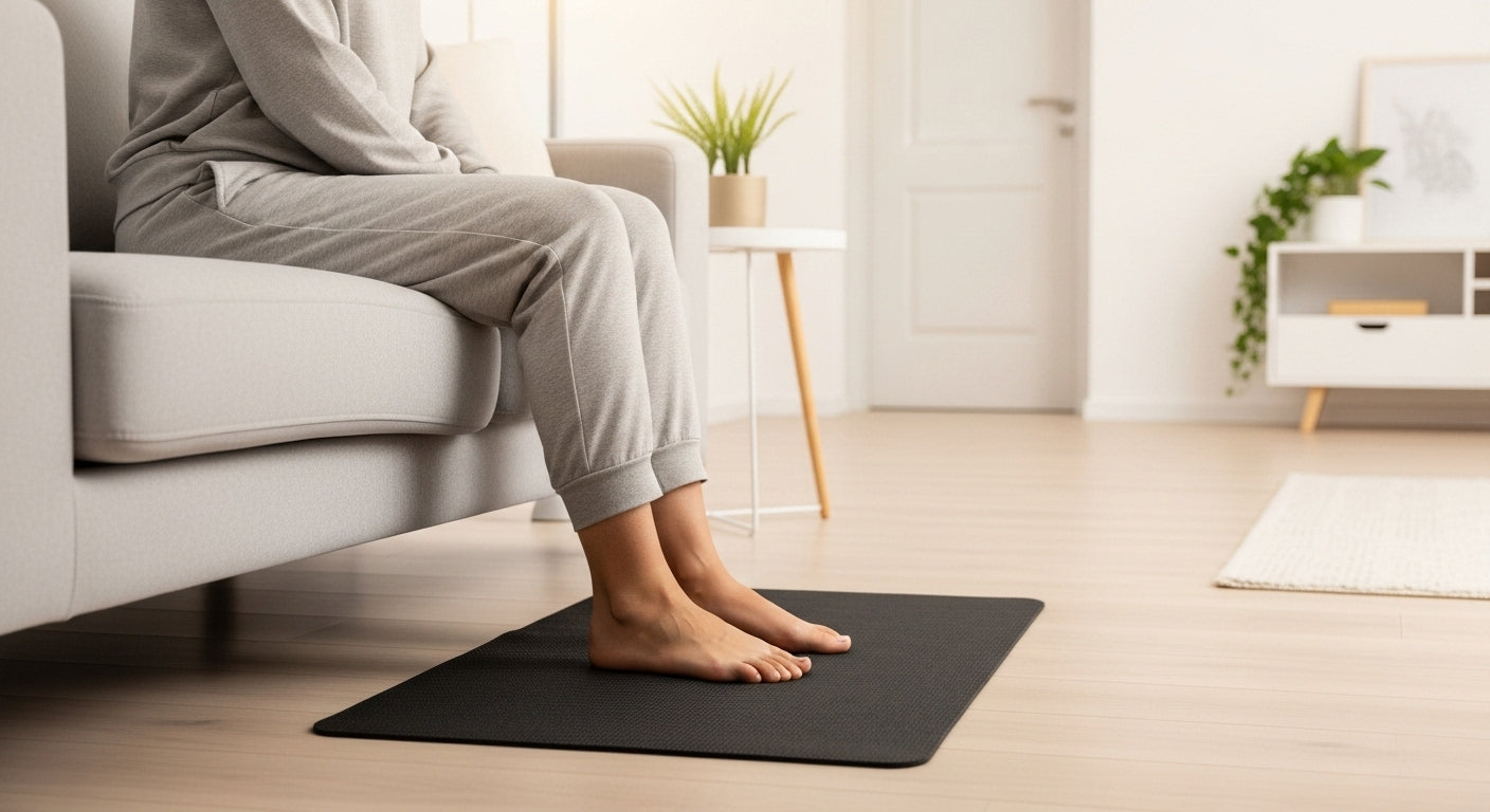 Plaats de mat: Gebruik hem onder je voeten bij het bureau, in bed of op de vloer.