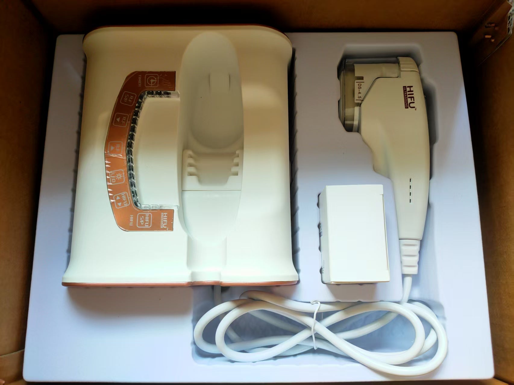 Ervaar professionele huidverjonging met de, een geavanceerd apparaat dat HIFU (High-Intensity Focused Ultrasound) en RF (Radio Frequency) combineert. Deze krachtige technologieën dringen diep door in de huidlagen om collageen en elastineproductie te stimuleren, waardoor rimpels verminderen, de huid strakker wordt en de gezichtscontouren opnieuw gedefinieerd worden. Een niet-invasief alternatief voor chirurgische ingrepen, met resultaten die zowel zichtbaar als langdurig zijn.